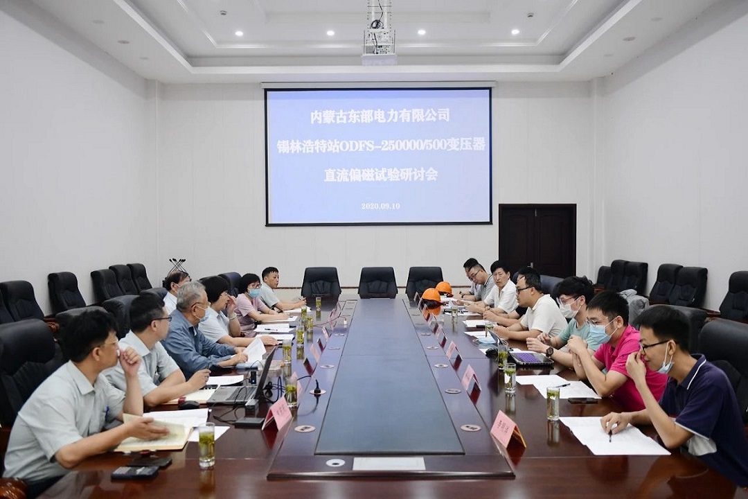 9月10日,国网蒙东锡林浩特ODFSZ-250000/500变压器直流偏磁试验方案研讨会在云博官方召开。来自上海交通大学、华北电力大学、中国电科院、国网电科院、湖北电科院、国网蒙东电力设备部、国网蒙东检修公司、四川启明星装备公司和我司的相关专家参加了本次研讨会。