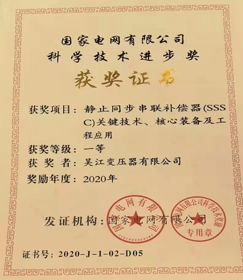 “静止同步串联补偿器(SSSC)关键技术、核心装备和工程应用”获2020年度国家电网科技进步一等奖。